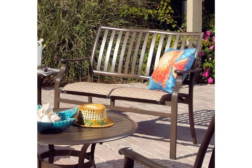 Boasting a tubular extruded aluminum frame in a unique powder coated espresso finish that will not rust, this loveseat features an exclusive woven Twitchell sling fabric, which is so comfy that it eliminates the need for cushions, seating you and your guests in luxurious comfort for hours on end.