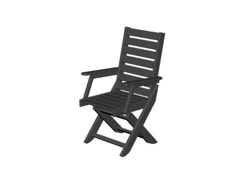 Patio Chair/black/all weather/made of recycled plastic bottles and steel hardware/39.75''H x 22.5''W x 25''D/17'' x 17'' seat/25.5'' from chair bottom to arm rest top/wash with soap and water/assembly needed/inside or outside use/made in USA/allow up to 10 additional days to ship, made to order