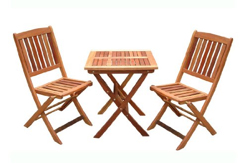 It means bringing all the comforts of indoor living the outdoors.Constructed of sturdy Eucalyptus woodPre-treated expertly kiln-dried - making it extremely durable for outdoor-indoor useEucalyptus is mold mildew fungi termites rot and decay resistantIncludes 1 bistro table and 2 folding chairsFolding design for easy portabilityTable dimensions - 24 D x 24 W x 28 H inchesChair dimensions - 24 D x 19 W x 37 H inches
